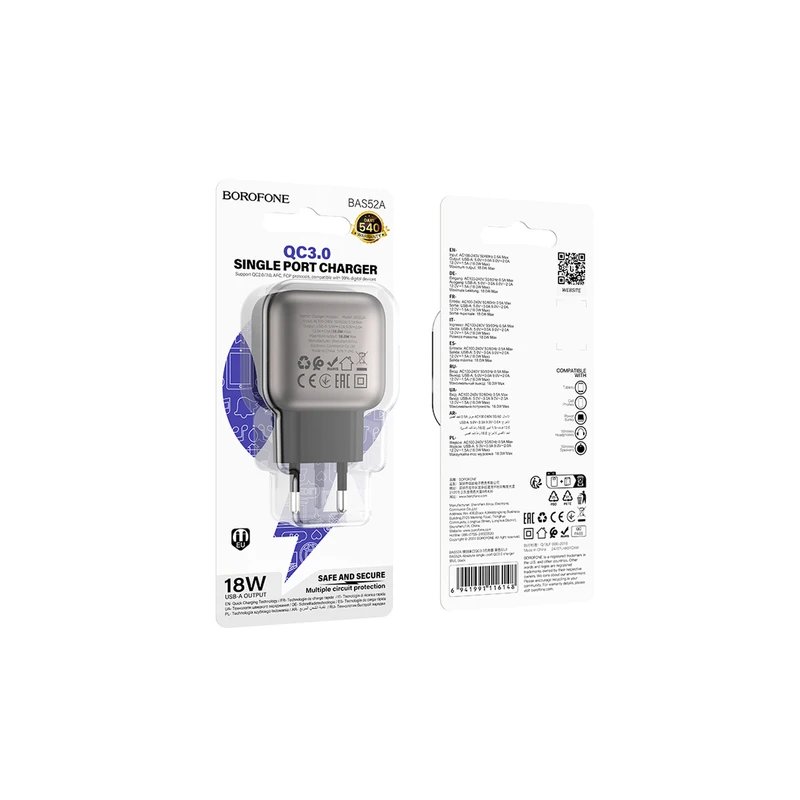 با شارژر دیواری 18 وات بروفون مدل BAS52A، دستگاههای خود را با سرعت و کارایی بالا شارژ کنید. این شارژر با تکنولوژی QC3.0، زمان شارژ را به حداقل میرساند و از حفاظت چندگانه برای امنیت دستگاههای شما برخوردار است. طراحی کمحجم و سبک آن را برای استفاده در هر مکانی ایدهآل میسازد. بهترین انتخاب برای کاربران حرفهای!