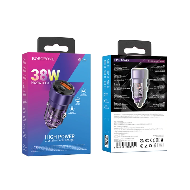 با شارژر فندکی 38 وات بروفون مدل BZ20، همیشه و همهجا دستگاههای خود را با سرعت فوقالعاده شارژ کنید! این شارژر با فناوریهای پیشرفته PD و QC3.0، تضمین میکند که هیچگاه نگران تمام شدن باتری نباشید. طراحی کمحجم و زیبا، مناسب برای هر خودرو، انتخابی هوشمند برای سفرهای شما!